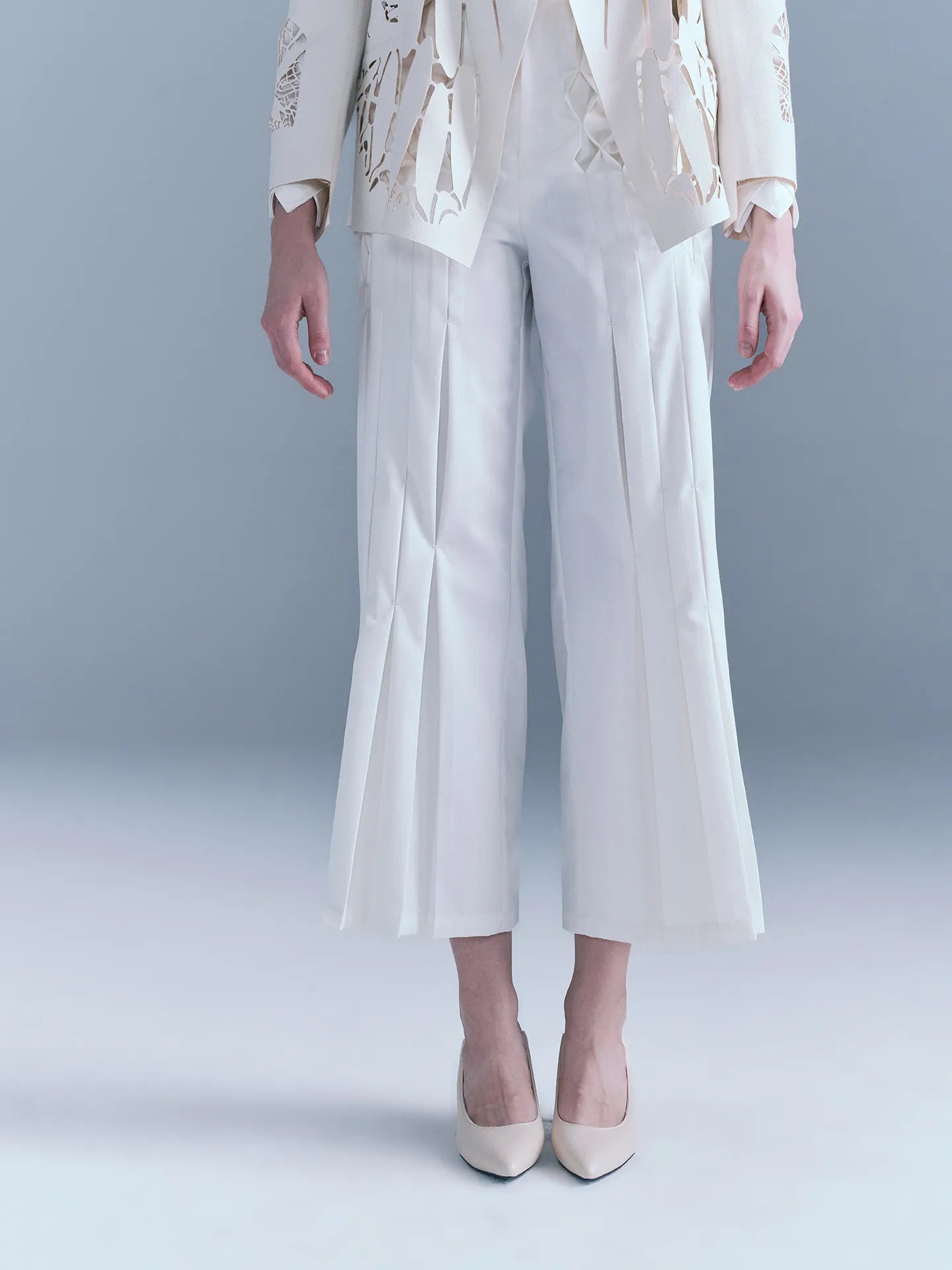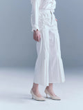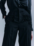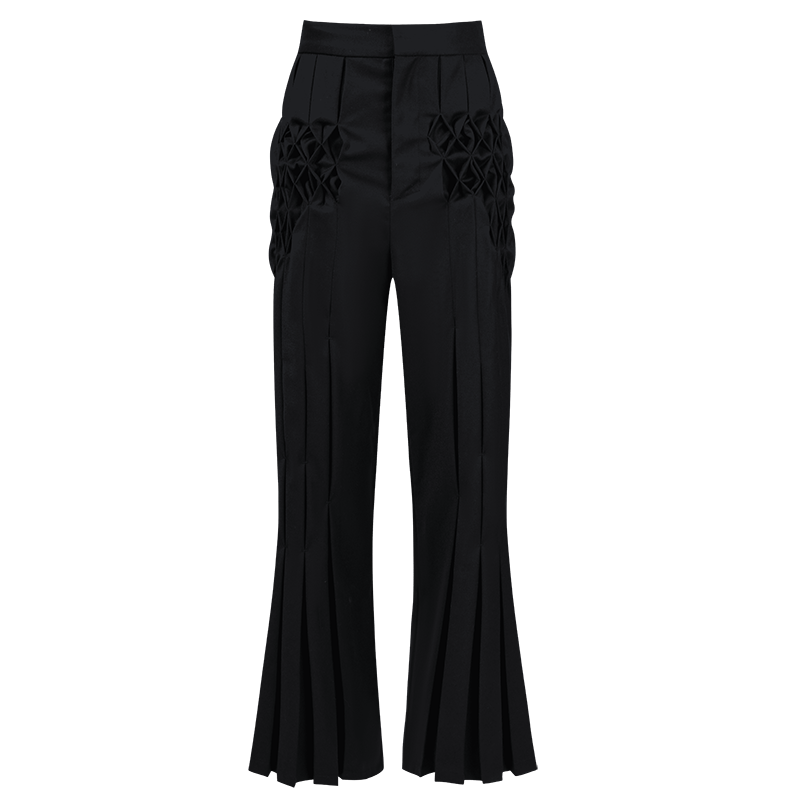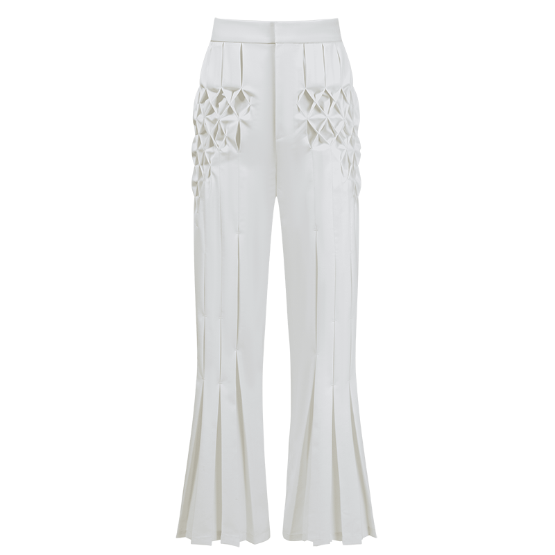 - This Smeck-style women's pant is available in black and white and is made of pure wool fabric. The front piece is pleated with a unique Smug process. The wide-leg cut offers a comfortable and fashionable wearing experience. It is equipped with side pockets and is both practical and useful.