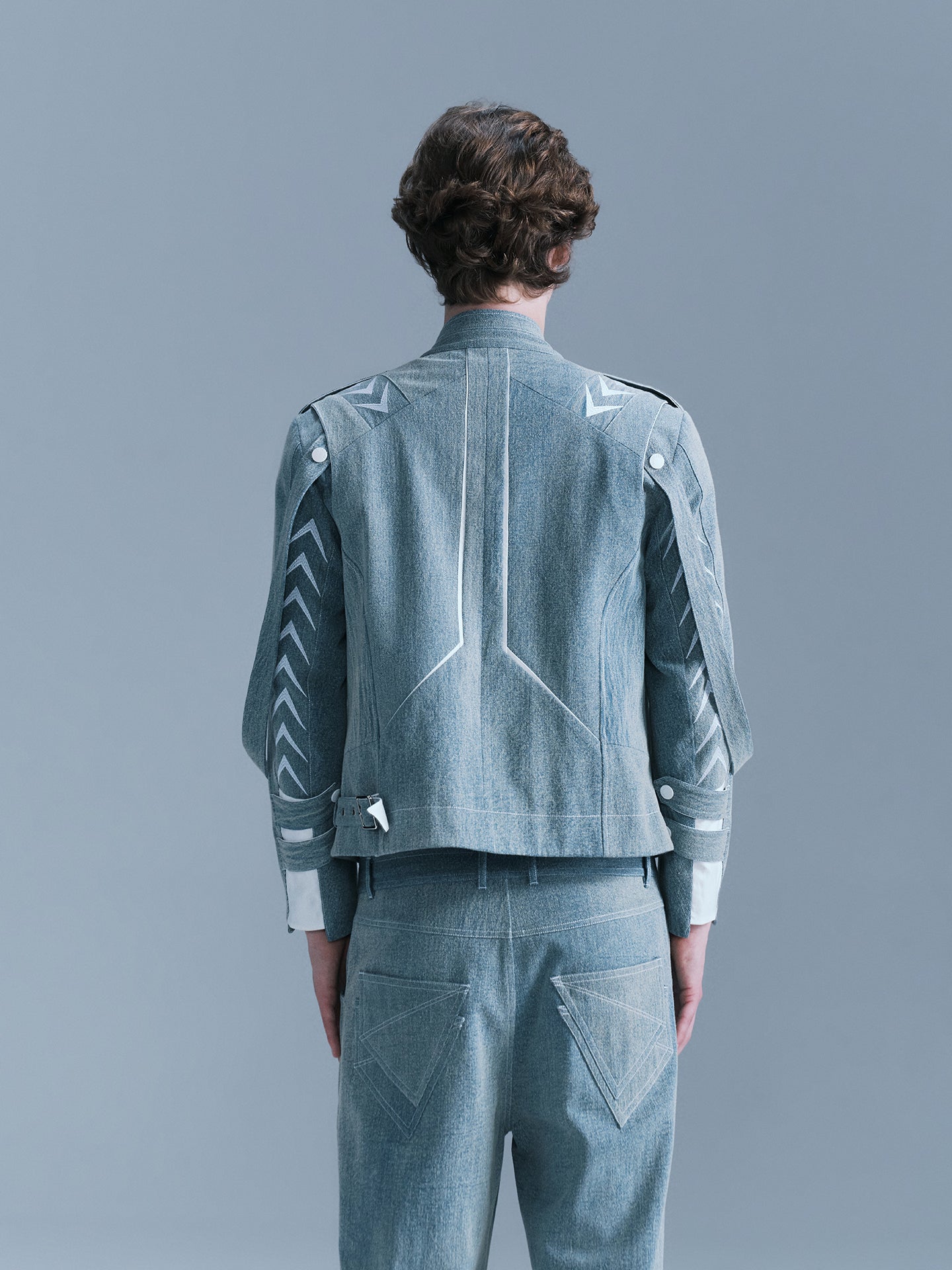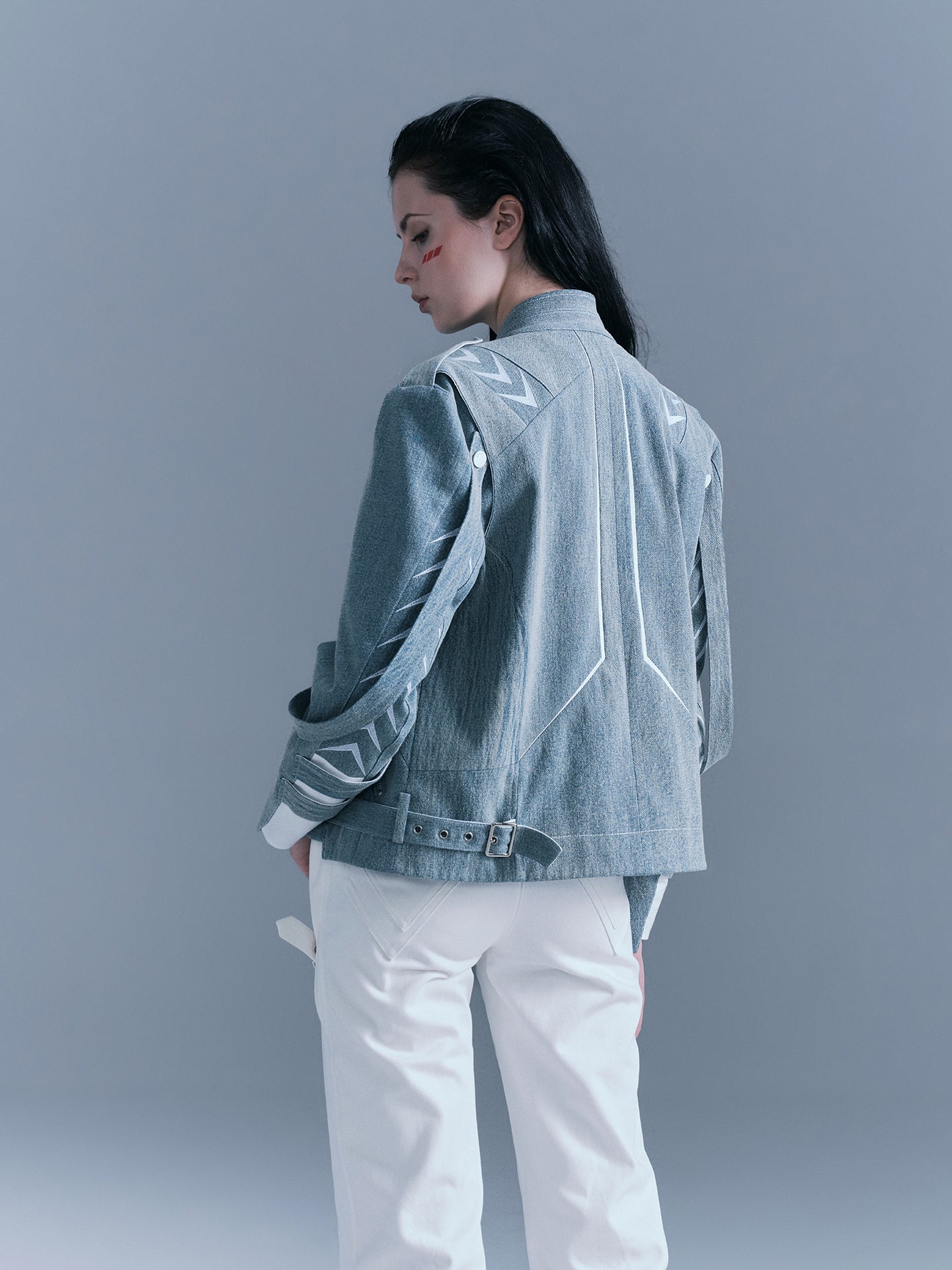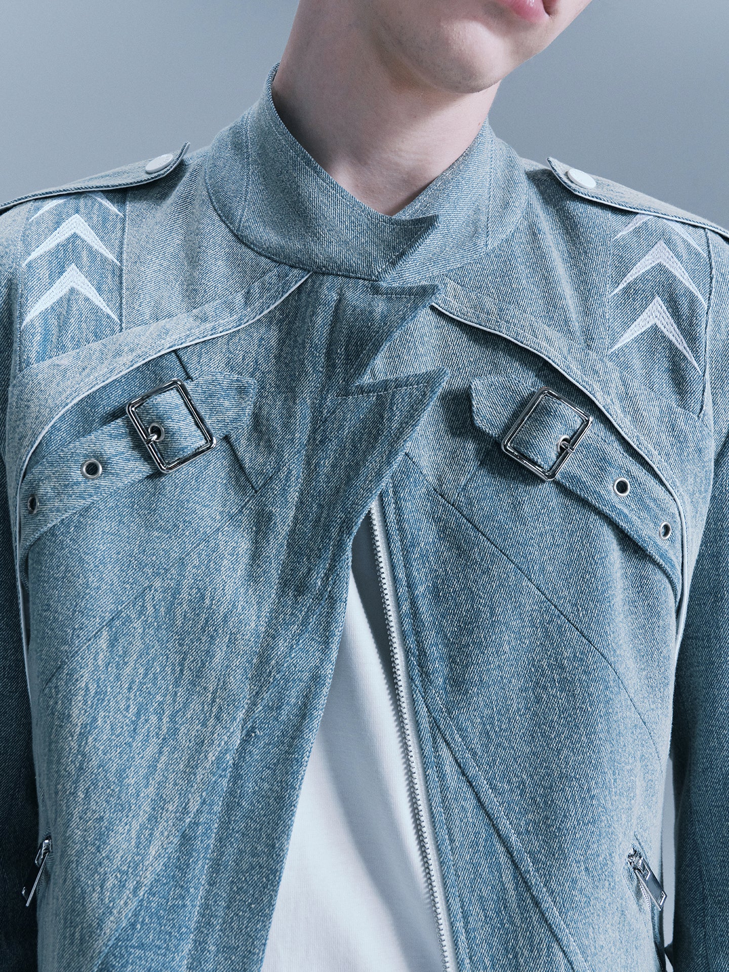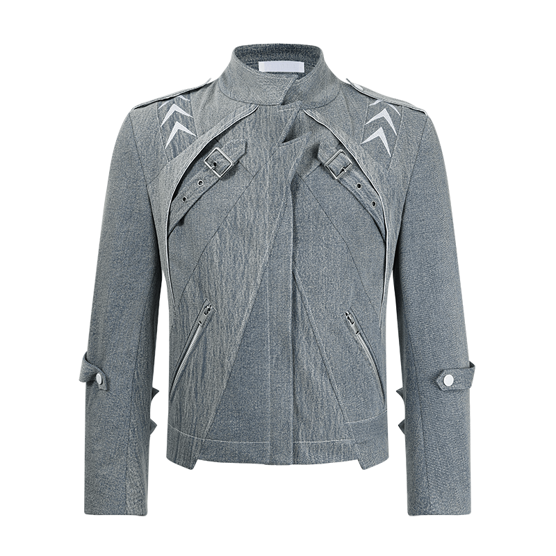 - There are white arrow embroideries on the shoulders and sleeves