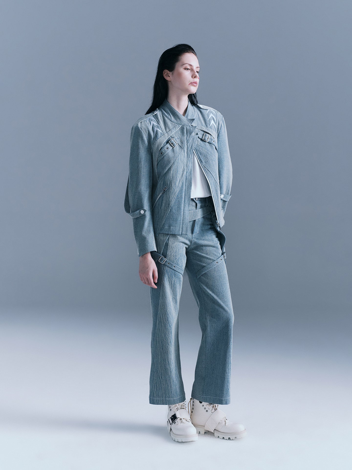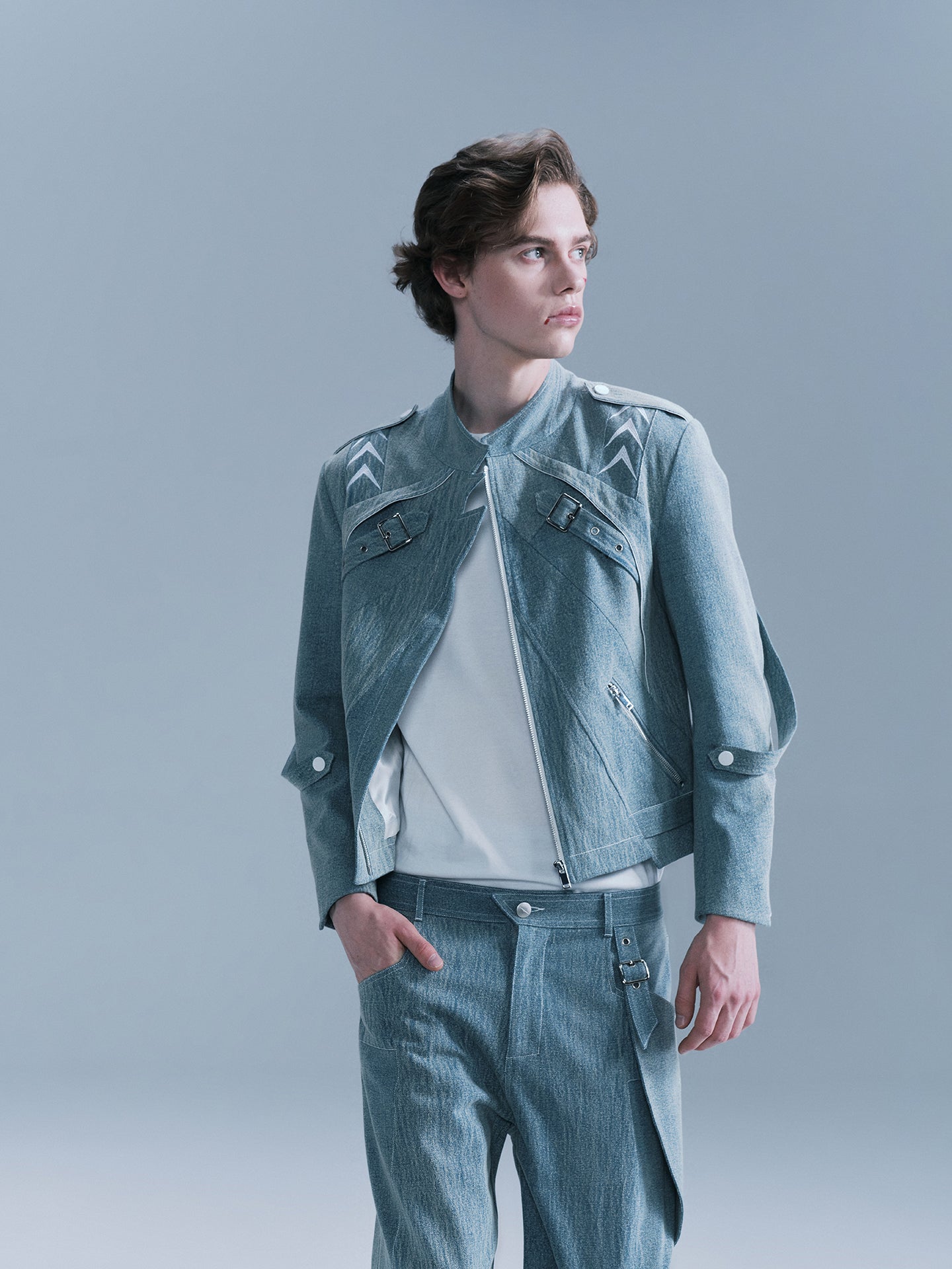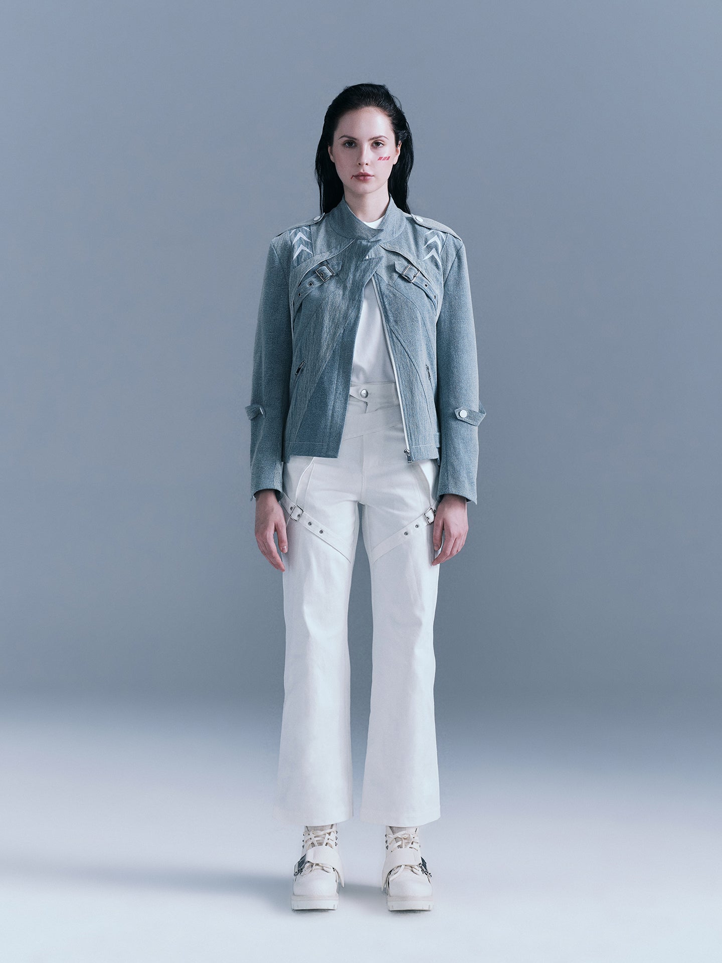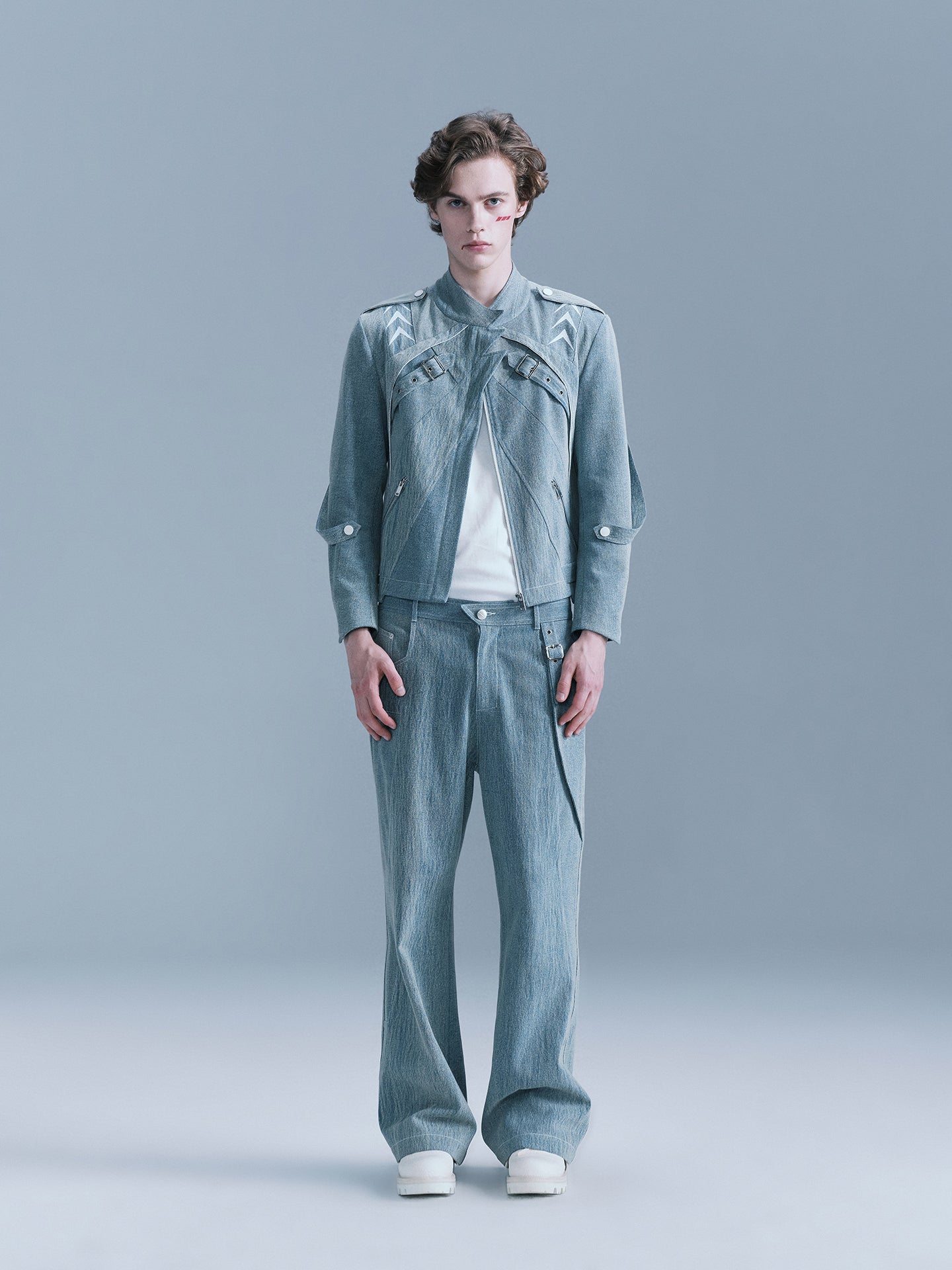 - There are white arrow embroideries on the shoulders and sleeves