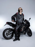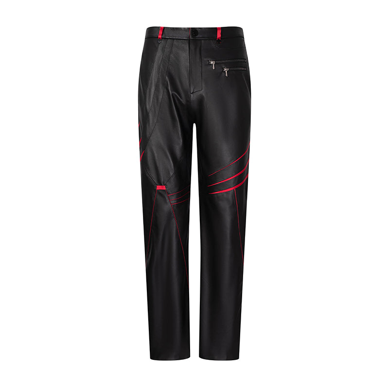 Contrast-colored diagonal striped leather pants